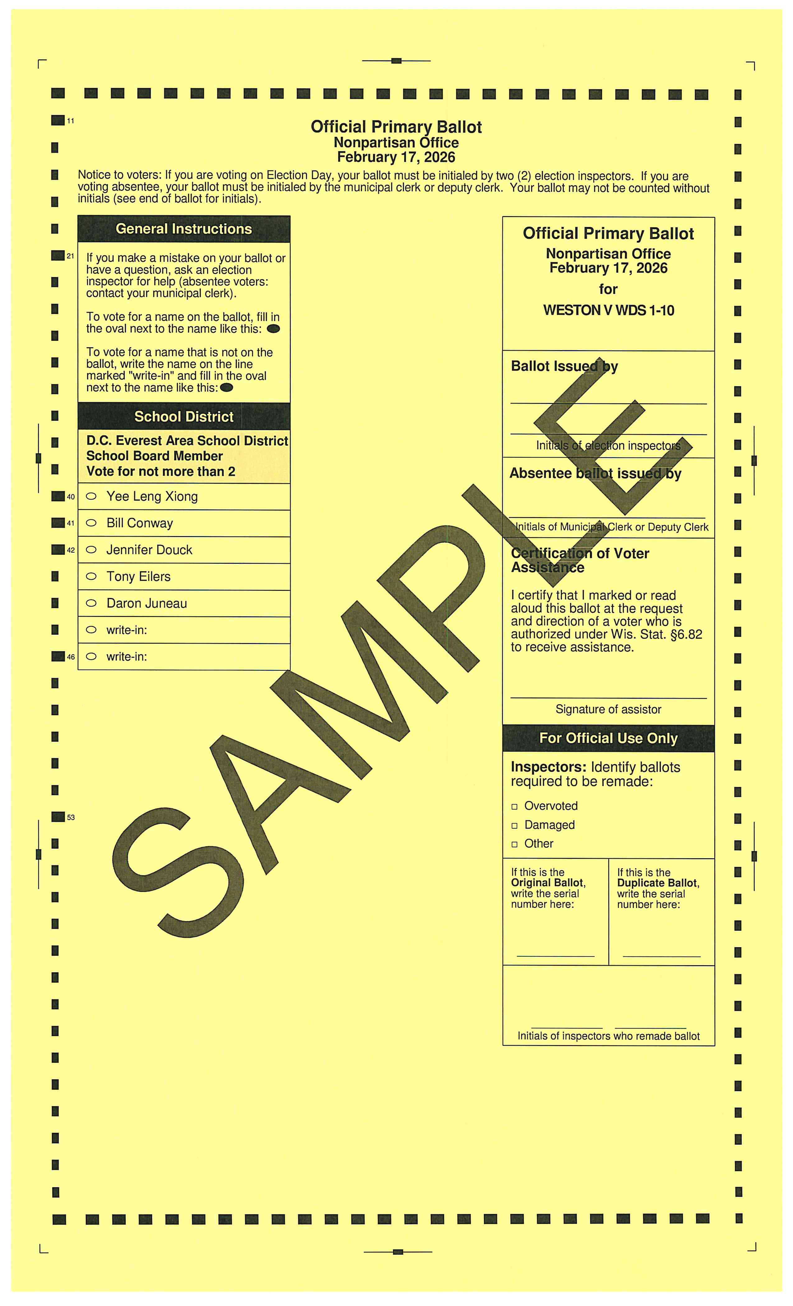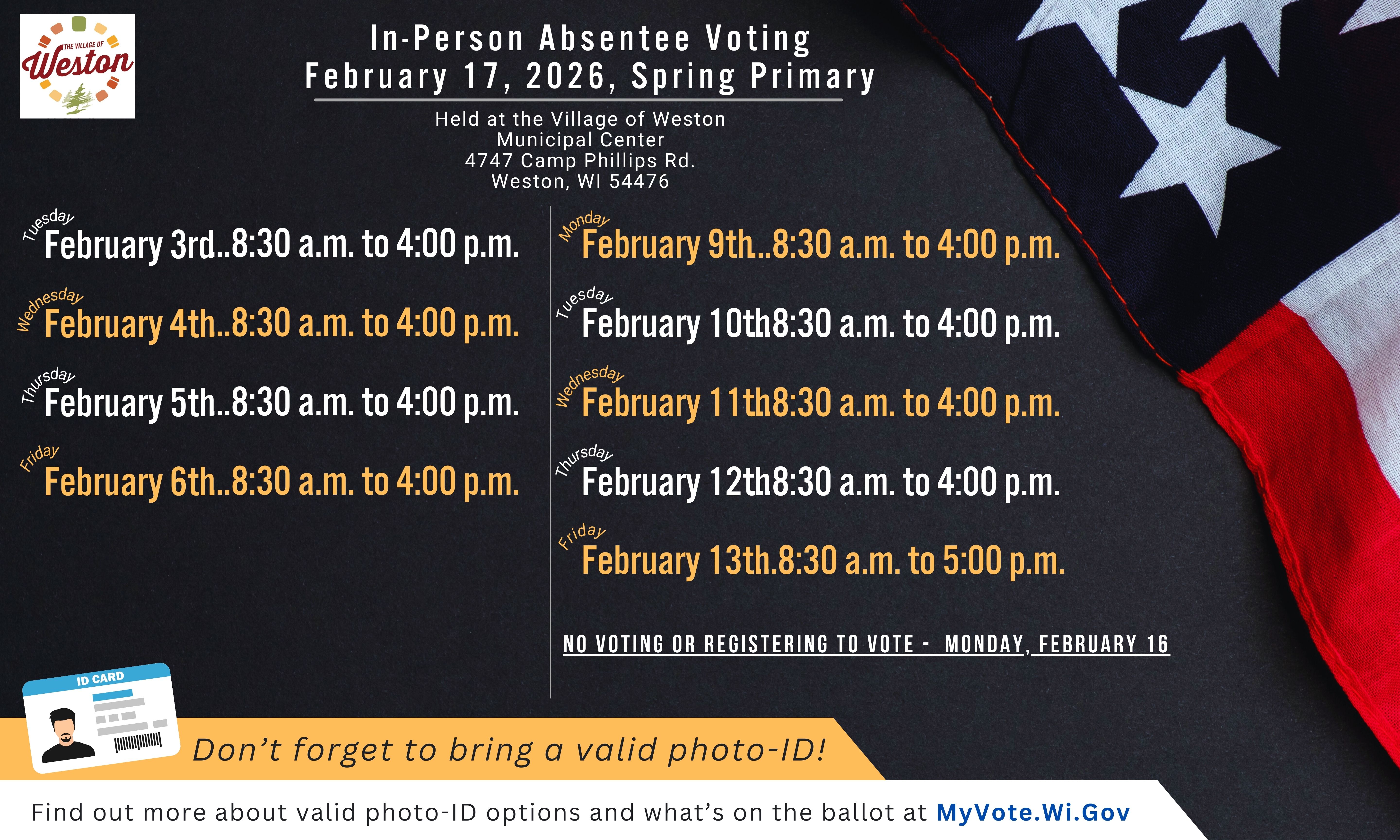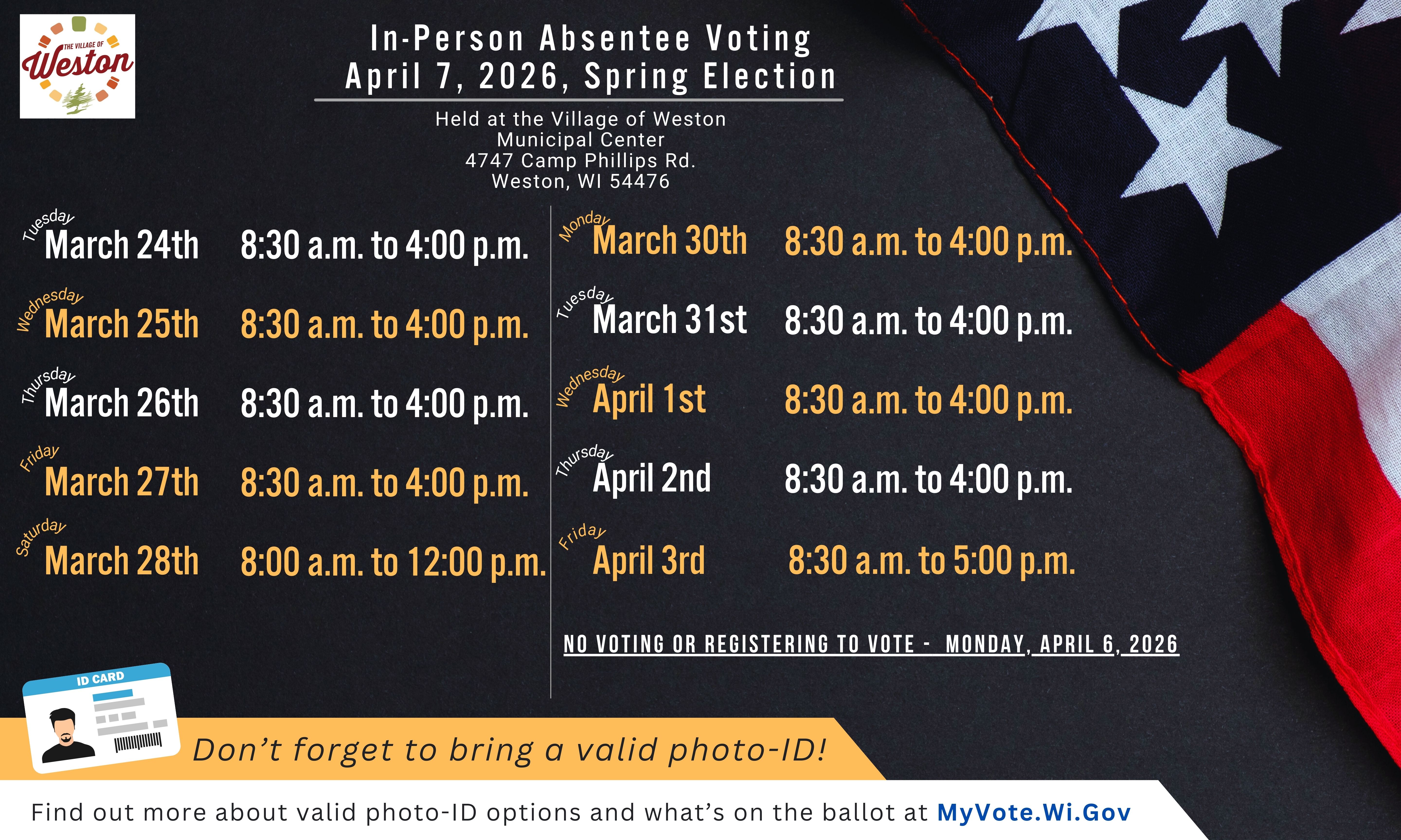 The polling place opens at 7:00 a.m. and closes at 8:00 p.m.